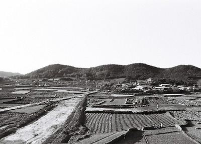 ▲ 1970년대 압구정동-배, 또는 복숭아밭 뒤로 현대아파트가 들어섰어요 ...