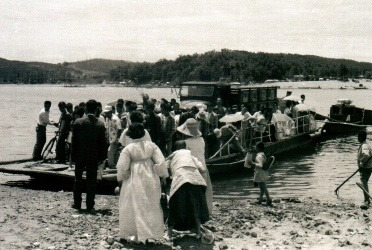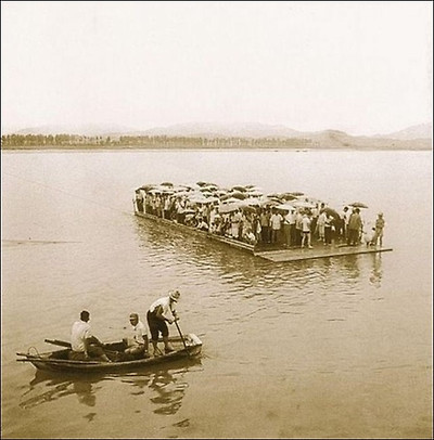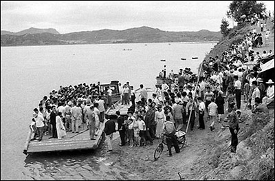 ▲ 사라진 잠실 신천 나루터와 나룻배(차배).1970년 ...