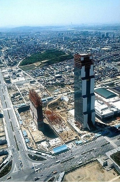 ▲ 강남구 삼성동. 1989년. 건축중인 그랜드인터컨티넨탈서울, 한국종합무역센터 ...