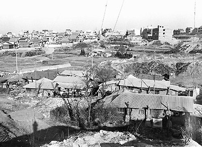 ▲ 영동지구개발 촉진책의 하나로 논현동에 들어선 공무원아파트(앞,뒤).1971년 ...