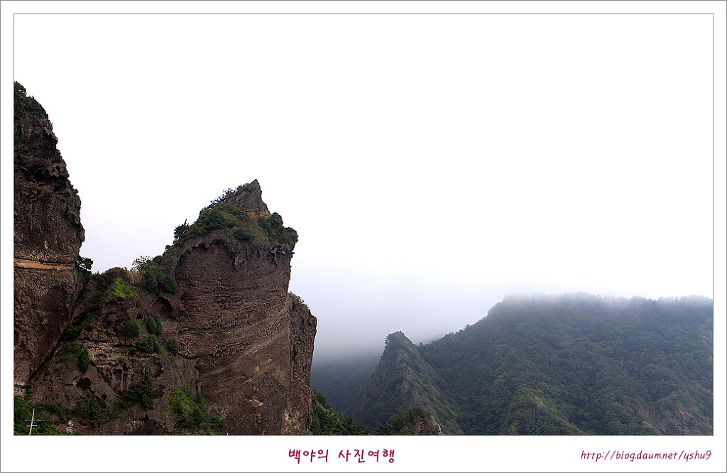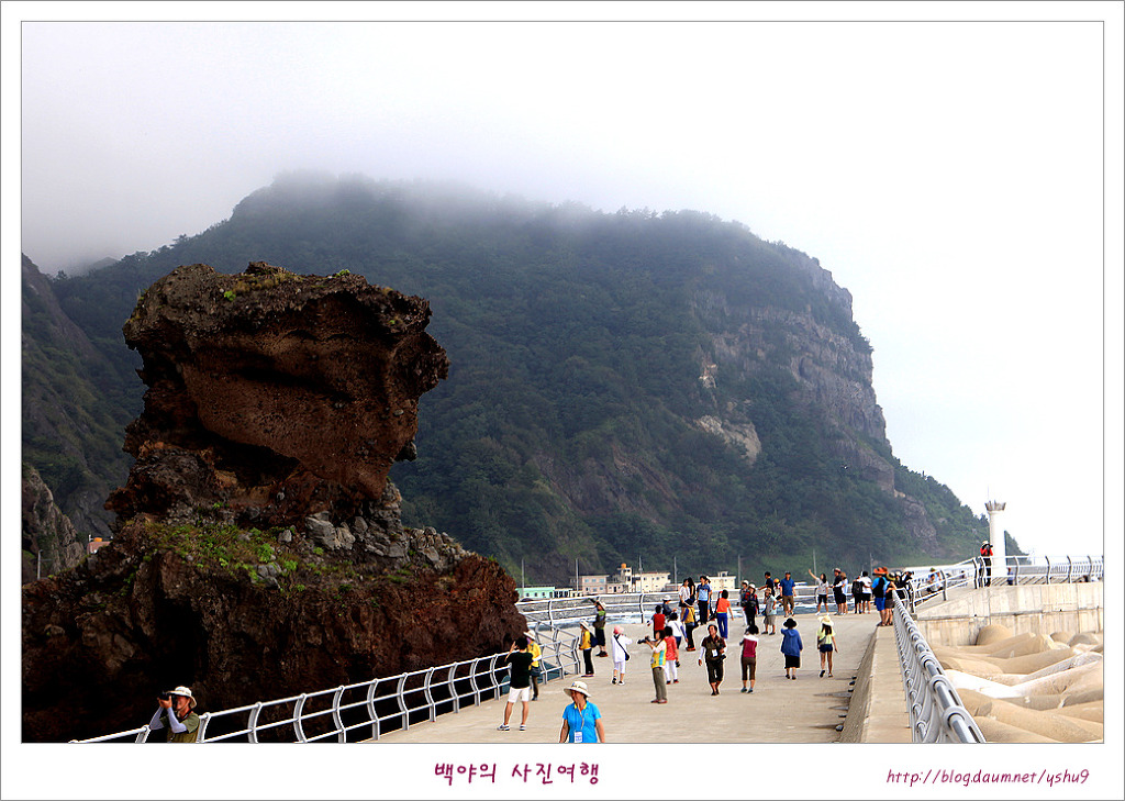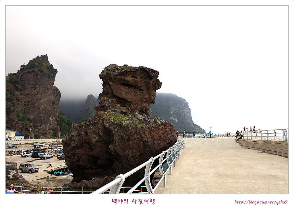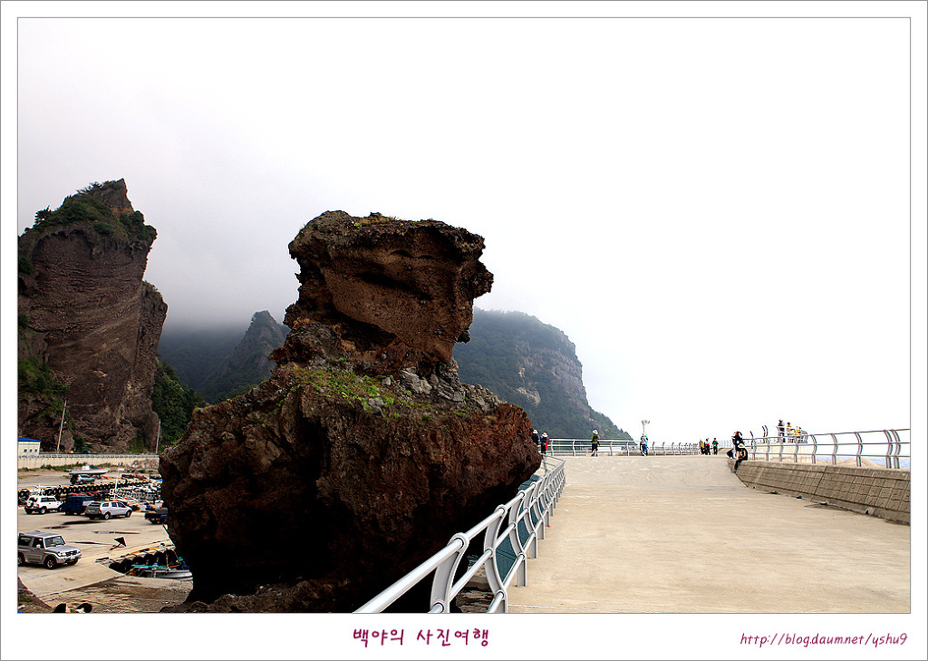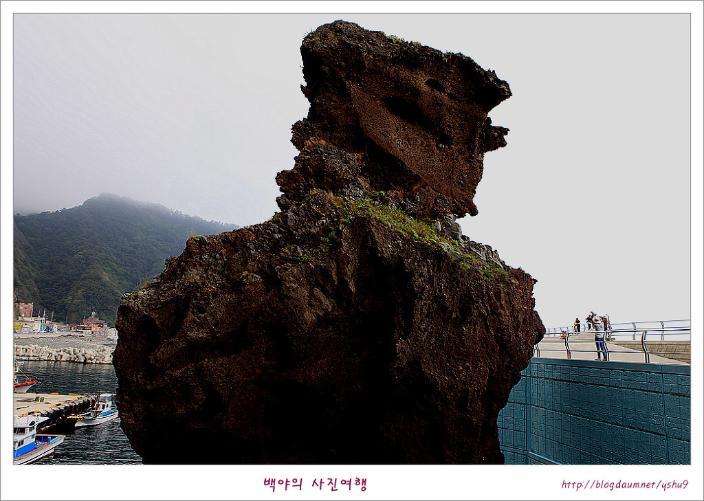 [울릉도] 사자바위와 투구바위. 울릉도의 해안도로를 따라 달리다보면 마을 어귀와 포구마다 이름을 달리하는 모양의 바위와 전설이 전해지는 이야기들이 흥미롭기만 합니다. 거북바위를 보고 천부방향으로 가다보면 남양항의 방파제 끝쪽으로 우뚝선 사자바위와 해안 일주도로 건너로 마주 보고있는 투구봉이 내륙의 바위와 다른 신비로운 모습으로 발길을 잡습니다. 사자바위의 전설중 한가지는 어느날 산신령이 나타나 울릉도의 모든 동물들에게 피신을 하라고 했는데 사자만 끝까지 남아 섬을 지켰다고 합니다. 그러던 중 화산이 폭팔하여 바다는 용암으로 뒤덮여 급히 바다로 뛰어든 사자는 그대로 돌이 되였고 그 이후 울릉도에는 야생동물이 살지 않게 되였다는 전설이 전해집니다 사자바위와 마주보는 바위가 투구처럼 생겼다 하여 투구봉이라고 부르는데 우산국을 토벌하러 온 신라장군 이사부와 우산국 우해왕의 싸움에서 패하여 항복한 우해왕이 투구를 벗어 던진곳의 투구가 돌로 변하여 투구봉이 되였다고 전해지는 황당한 전설이기는 하지만 남양항 방파제에서 사자바위와 투구봉이 한눈에 들어오는 풍광이 정겹기만 합니다. (사자바위 투구바위 : 경북 울릉군 서면 남양리 54-11) 감사합니다 |