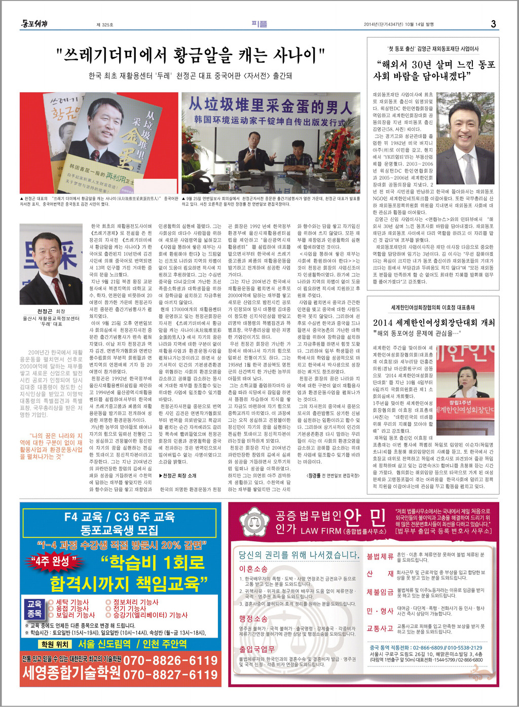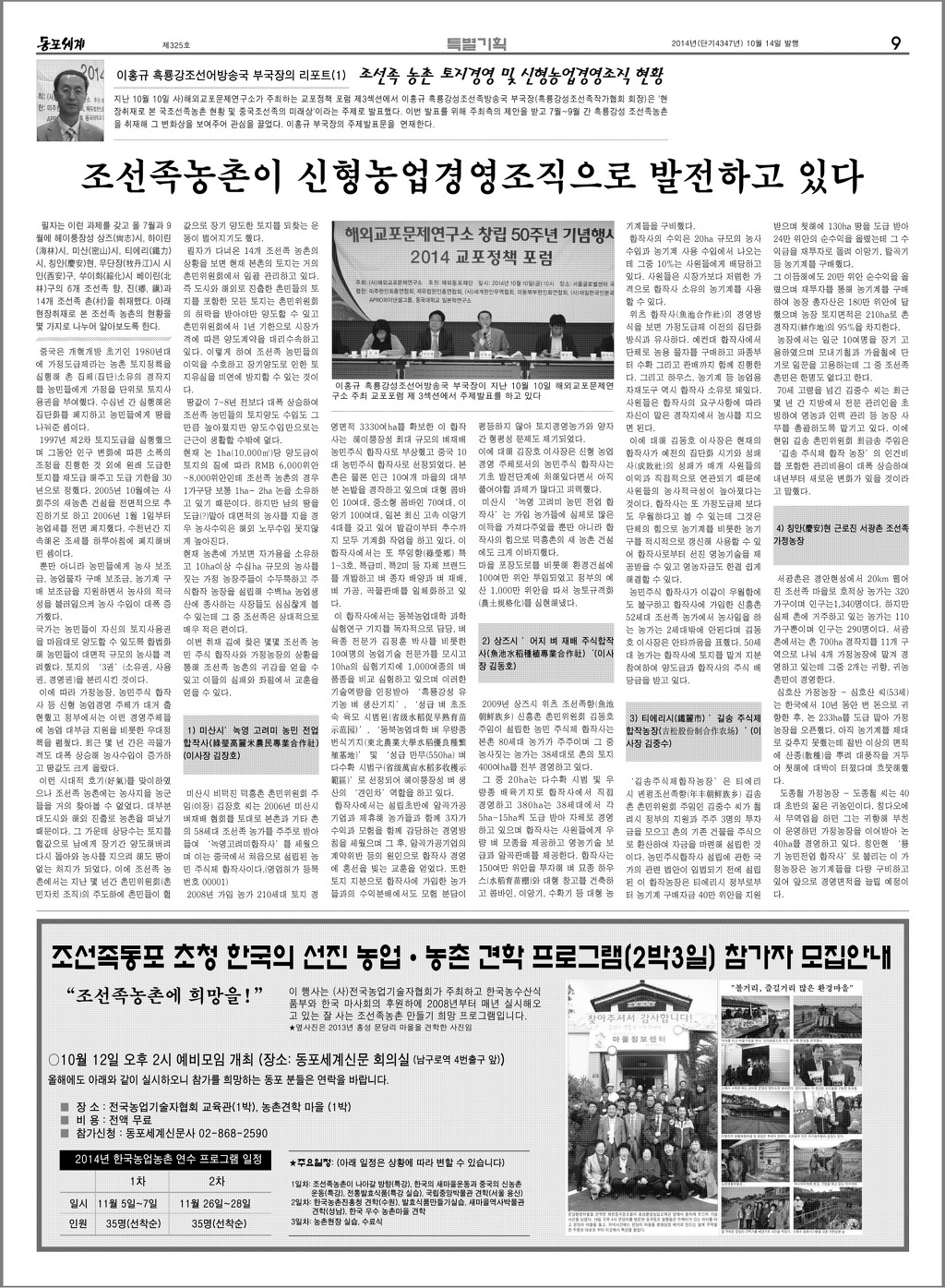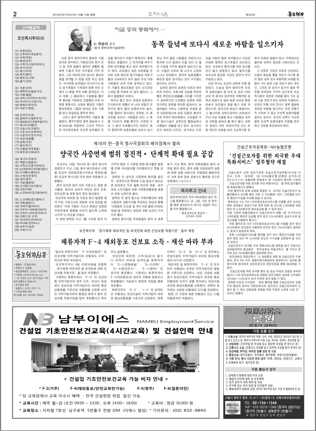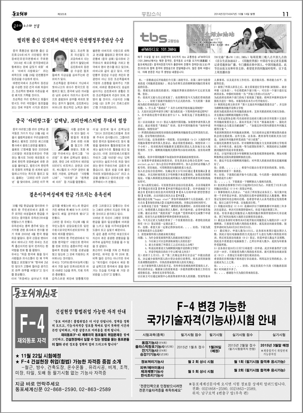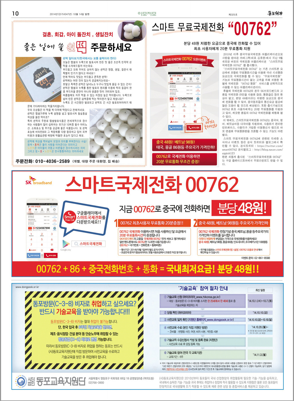 중국동포 희망 동포세계신문 제325호(2014.10.14일) 발행판입니다.