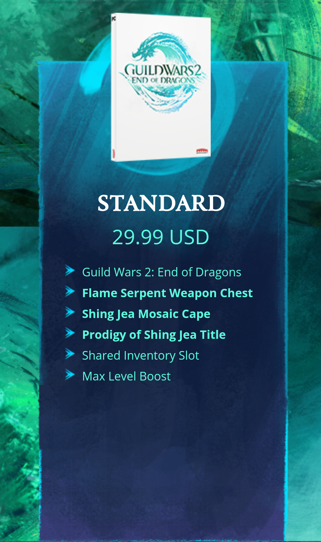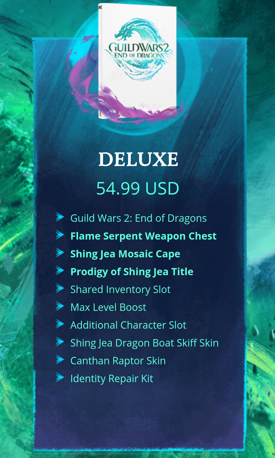 다시 태어났다Guild Wars 2: End of Dragons는 수상 경력에 빛나는 비평가들의 찬사를 받은 MMORPG Guild Wars 2의 세 번째 확장팩입니다. 수년 동안 Tyria를 지탱하고 황폐하게 만든 드래곤 사이클이 무너지고 있습니다. 필멸의 마음과 선택은 역사상 이 순간을 정의할 것이며 미래에도 영원히 메아리칠 것입니다.