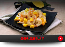 애플망고를 곁드린 크림 새우 요리