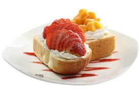 생크림 위에 과일 엊은 식빵 디저트