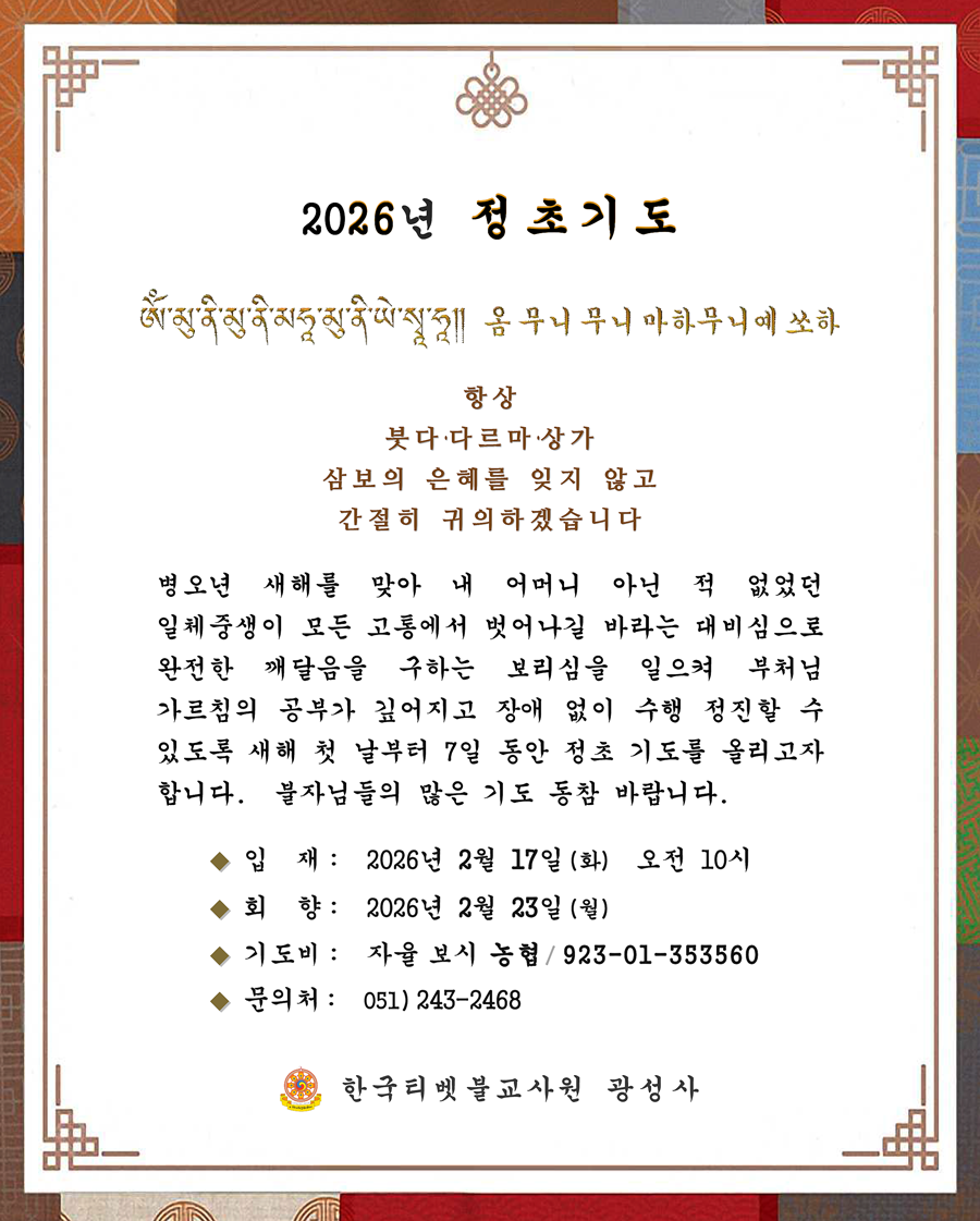 공부가 깊어지고 장애 없이 수행 정진할 수 있도록