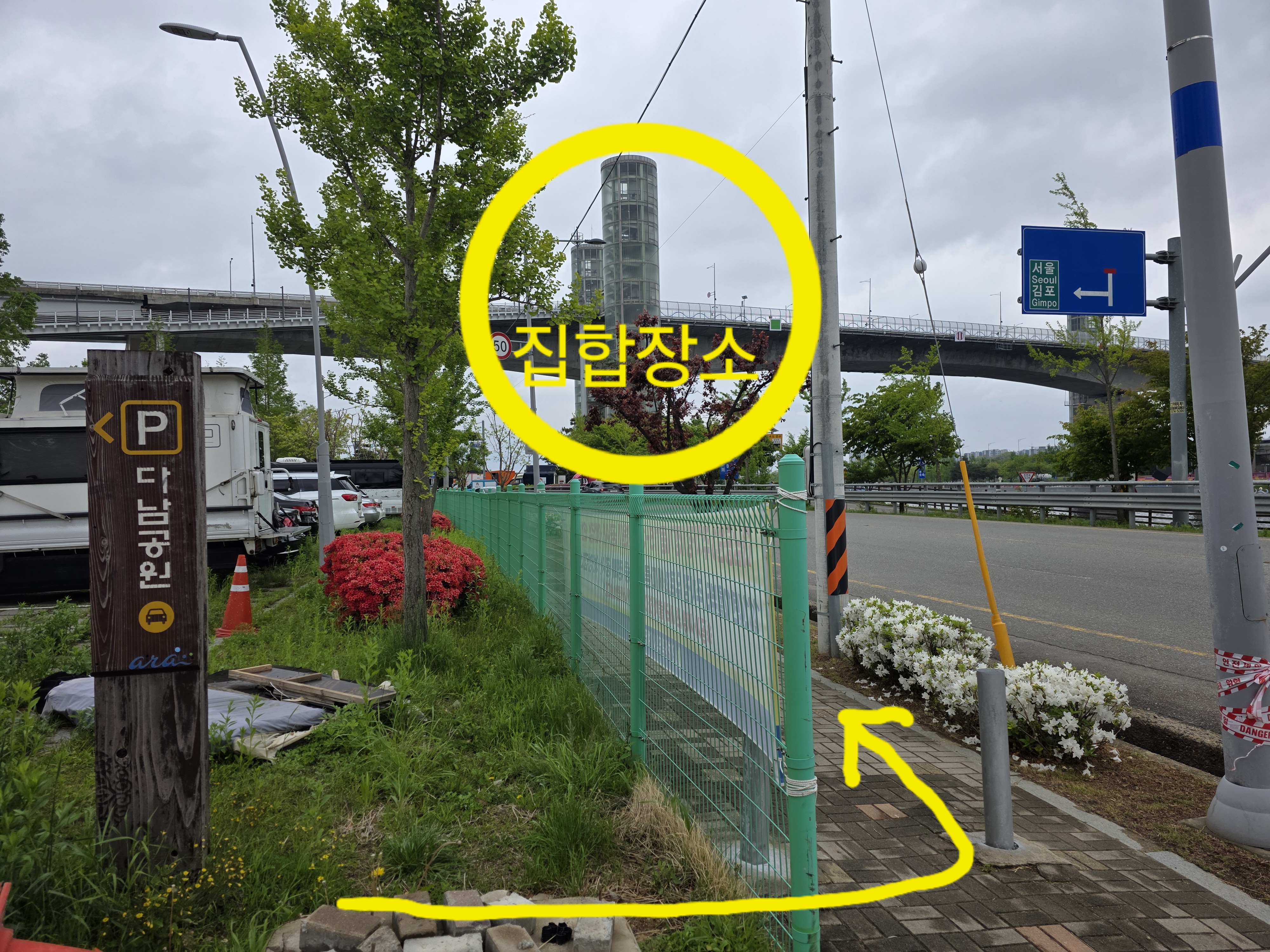 2. 다남공원주차장1 (집합장소에서 도보 약 3분, 주차장에서 대회장 집합장소 계양대교 아래가 보입니다. )