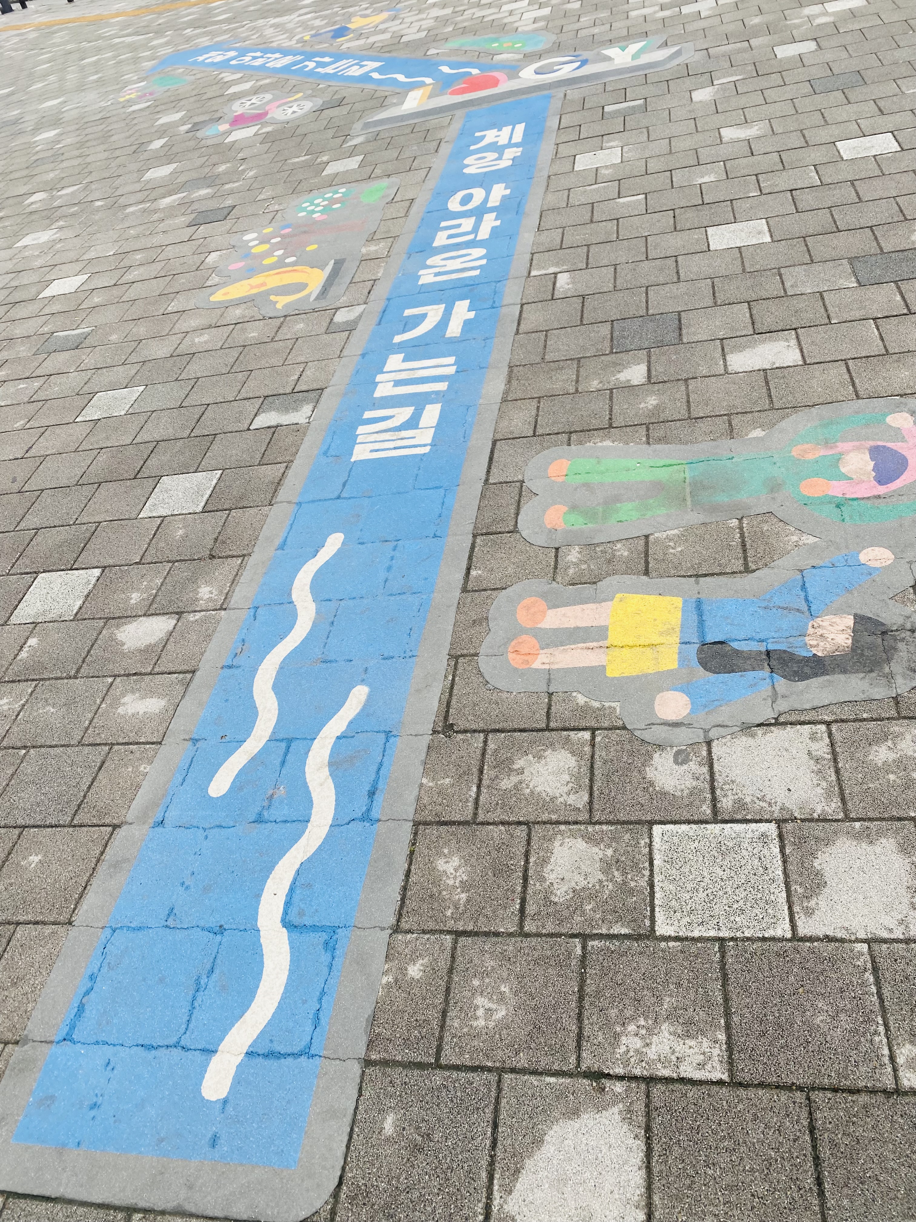 출구가 1개이며 바닥에 "계양아라온 가는길" 표시가 잘 되어있어 이것만 따라 오시면 됩니다.