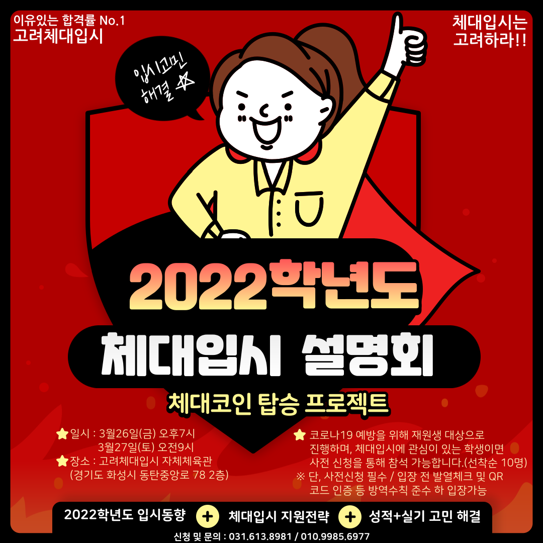 ▶ 장소 : 고려체대입시 자체체육관 (경기도 화성시 동탄중앙로78 2층)