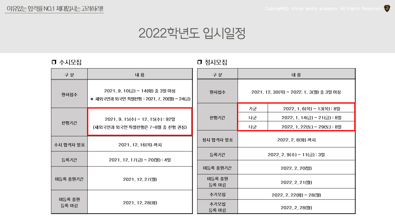 2022학년도 대입 입시일정 안내