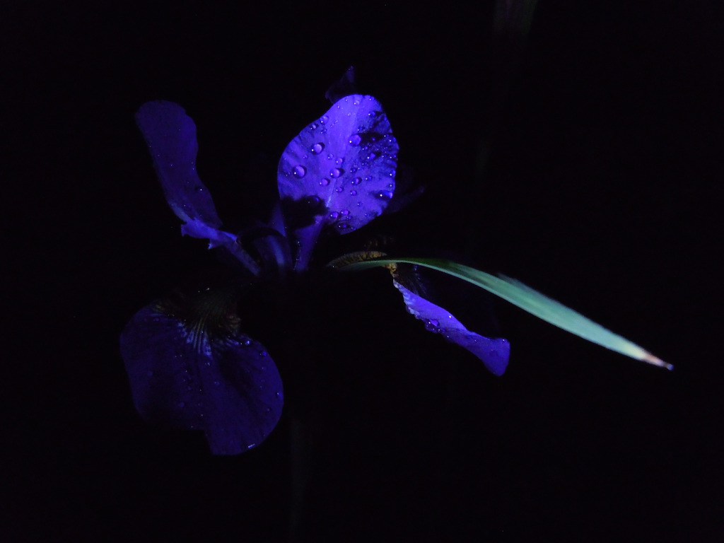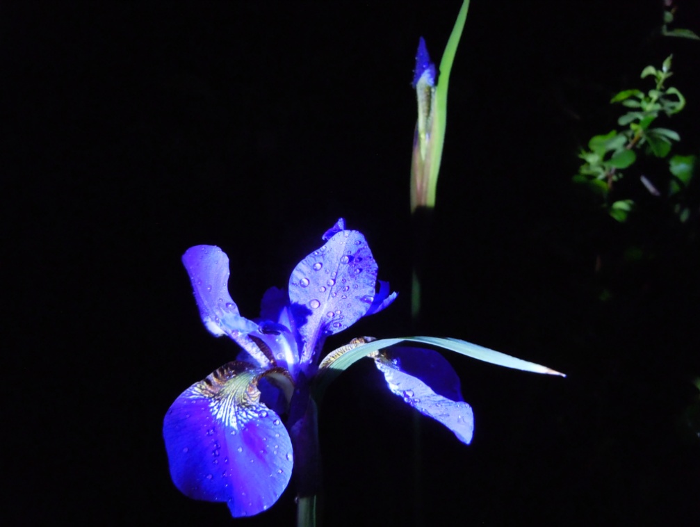 그 속에서 붓꽃들이 나와 자라고 있습니다.