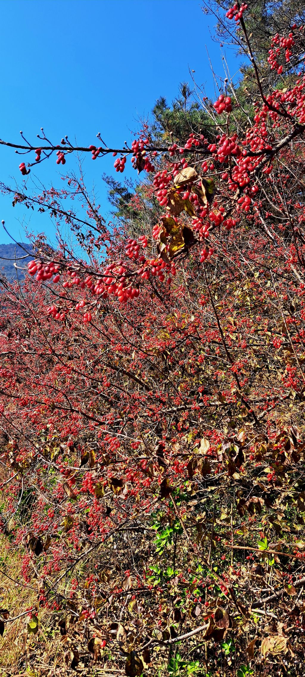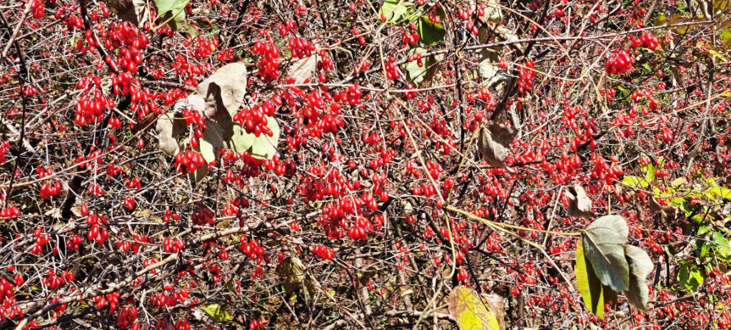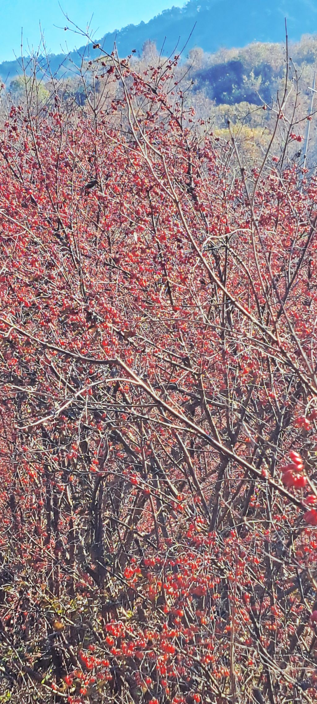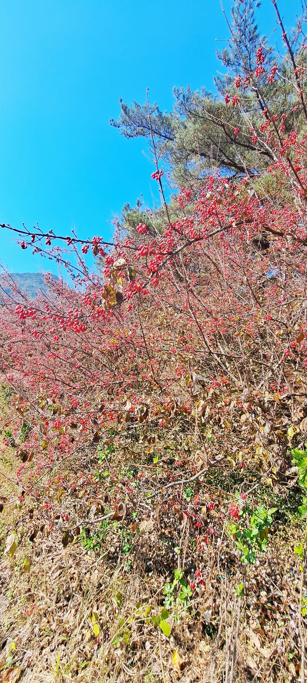 이른봄 노랗게 꽃이 피었다가 초겨울 잎을 다 떨구고 나면 빨간 열매가 매달렸다 눈발이 날리면 멋진 풍경화가 됩니다