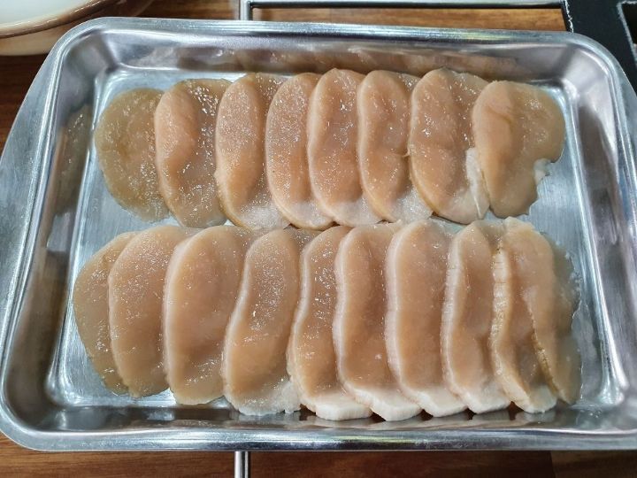 대천 삼합은 치즈를 곁들이게 되어 있다. 전복, 대합과 함께 3대 고급 패류로 알려진 키조개에 치즈를 곁들이고 대합까지 합류했으니 이보다 화려한 해물밥상 받기가 쉽지 않을 거 같다. 가리비 또한 대합 맛 못지 않다. 거기다 차돌백이를 더했으니, 최상의 식재료다. 거기다 맛있게 먹는 삼합, 오합, 칠합에 명이나물을 더해보라. 모두 다 싸서 먹으면 삼합보다 더한 육합 칠합으로도 먹을 수 있다. 궁합이 맞는 것들끼리 다양한 방식으로 먹어보고, 젤 맛있는 조합을 찾아보자.