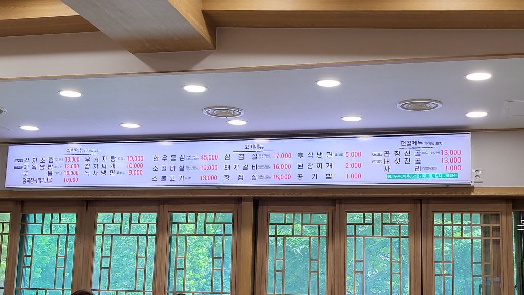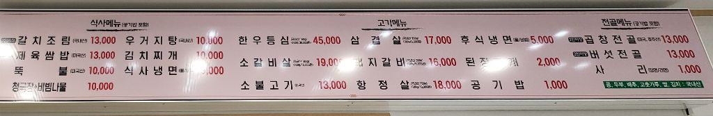 인테리어 이전에는 확실히 숯불구이 전문집 같았는데, 이후에는 약간 주메뉴를 이동한 거 같은 분위기가 난다. 고기구이는 여전하지만, 갈치조림, 비빔밥등의 메뉴가 부상하고 반찬도 이에 따라 강화되고 증가되었다. 지금 이대로의 찬으로도 진한 된장조림만 있으면 비빔밥이 가능하다.