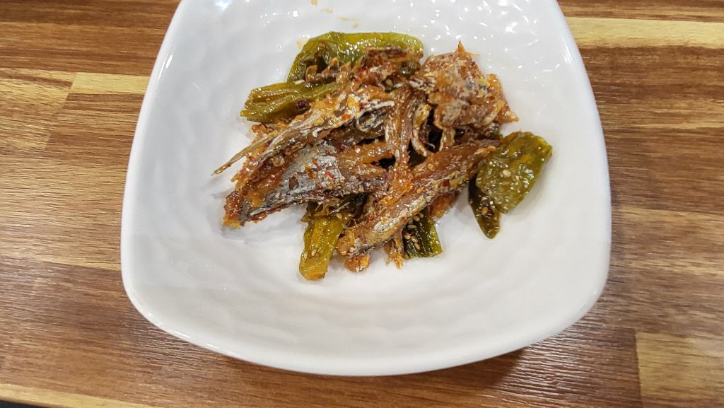 쫀득하고 꾸덕한 식감에 함께 졸인 고추의 매콤한 맛이 배여 개운하고 좋다. 한 밥상에 같은 어종이 둘이 된 것은 조금 부담스럽지만 갈치전문 밥상인가 하는 전문성 쪽에 초점을 맞추면 그 또한 괜찮은 상차림이라 하겠다. 갈치와 풀치를 다 만나는 밥상, 둘 다 괜찮은 맛으로 상을 온전하게 하는 조리법이 좋다.