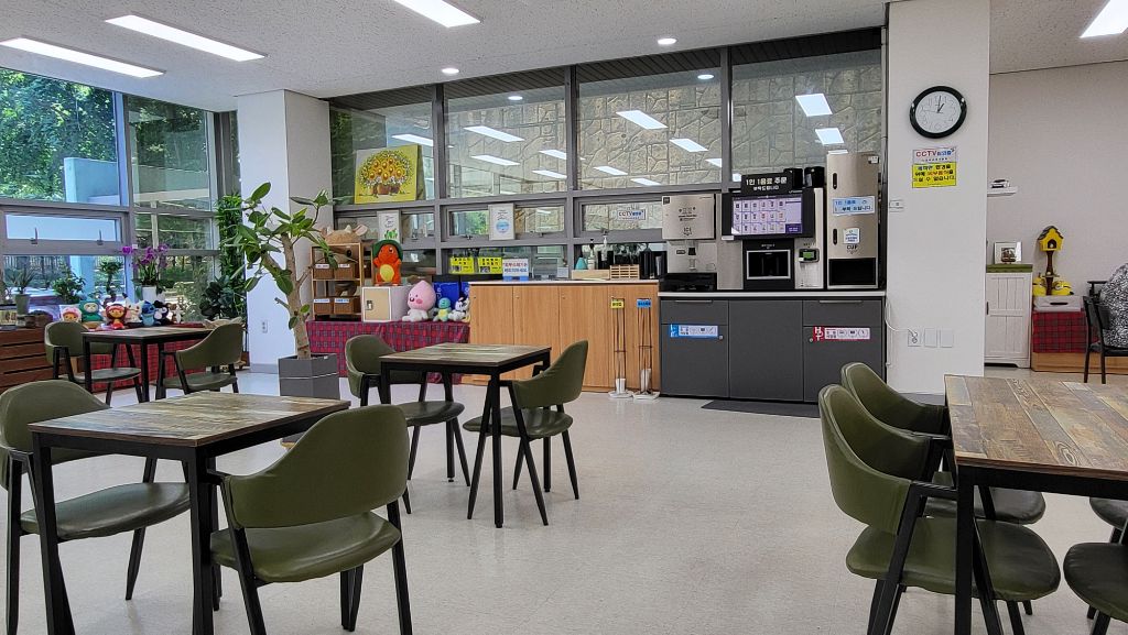 100미터쯤 거리에 잇는 공공 커피점이다. 자원봉사자들의 도움으로 운영되는 커피점이 새마을 회관 1층에 있다. 커피값도 2천원~2500원 정도. 무인점포로 운영되는데, 커피 맛이 최고는 아니어도 먹을 만하다. 공간이 넓고 쾌적한 것은 어떤 사설 커피숍도 가지지 못하는 장점이다.
