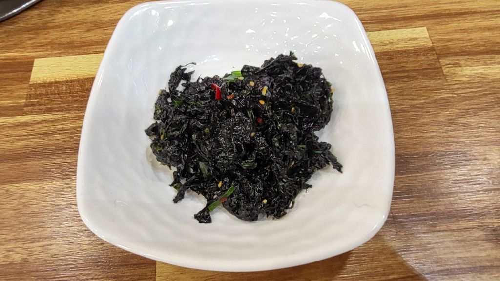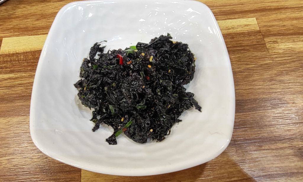 김무침. 호복히 많이도 나왔다. 까만 빛깔이 신선함을 말해준다. 잘깃한 식감도 좋다. 약간 간간하여 밥도둑이 되었다.