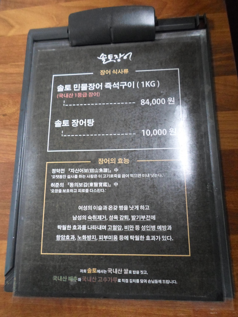 5. 음식 값 : 장어 1키로 84,000원(2인에 적당)