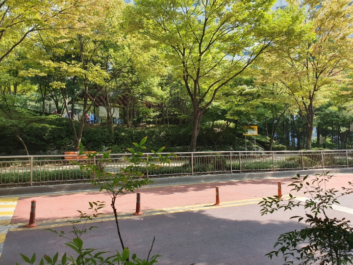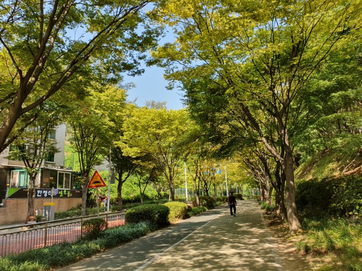 산본은 최고의 주거지역이다. 녹지공간이 넓고 수리산자락은 찻길과 함께 해도 차량 이동량이 많지 않을 뿐 아니라 오히려 사람을 위한 도보 공간이 더 넓다. 게다가 이미 청장년이 된 울창한 가로수들이 짙은 그늘을 드리우며 울타리가 되어준다. 하늘로는 양산이, 차량에게는 울타리가 되면서 확실히 사람의 공간이 된다.