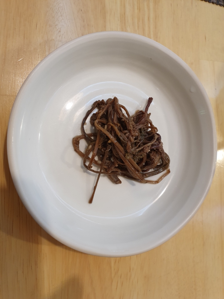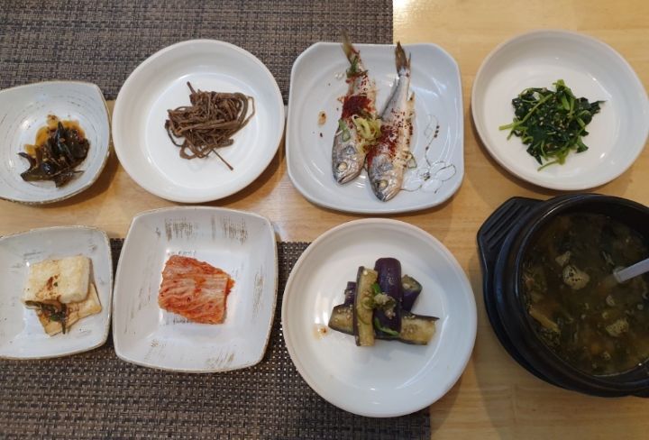 4) 밥반찬이 고루 나왔다. 조기찜, 해남고사리, 참나물무침 등등에 된장국이다. 땅끝마을 해남은 고사리로 유명한 동네다. 경기도 땅에서 해남 고사리를 먹어본다.