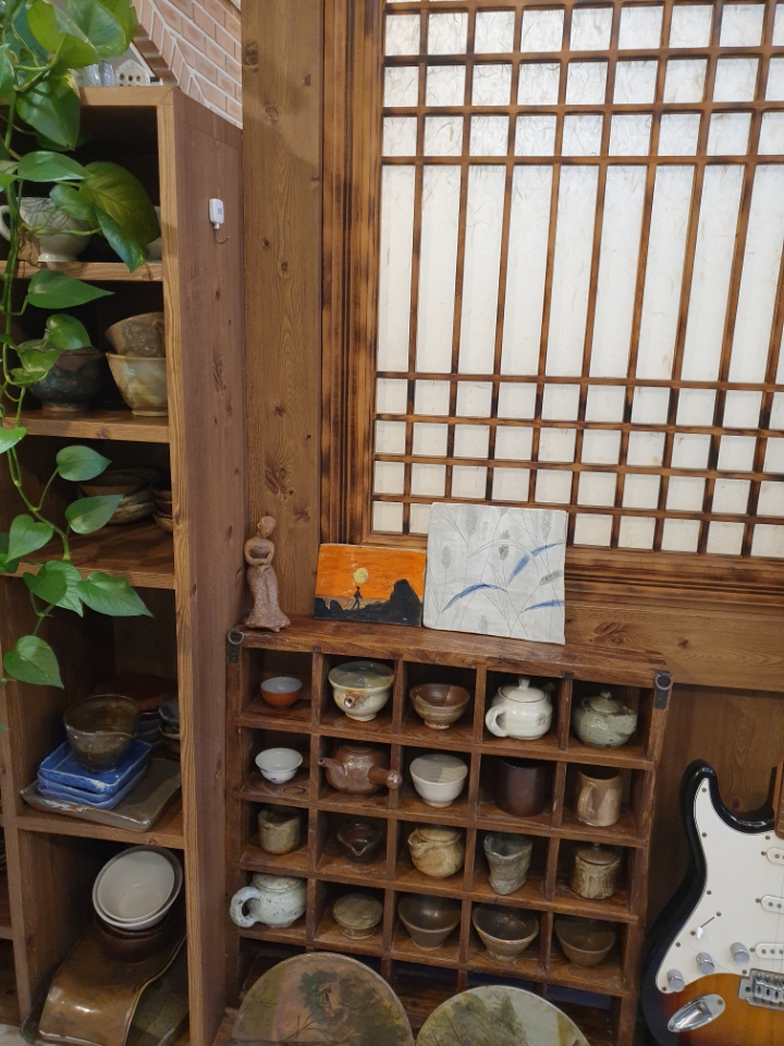 식당은 실내장식도 그만이다. 수준급의 그림도 벽을 돌아가며 빼곡히 붙어 있다. 도자기등 다른 장식품들도 한식당의 품위를 높인다. 자리도 널직널직하다.