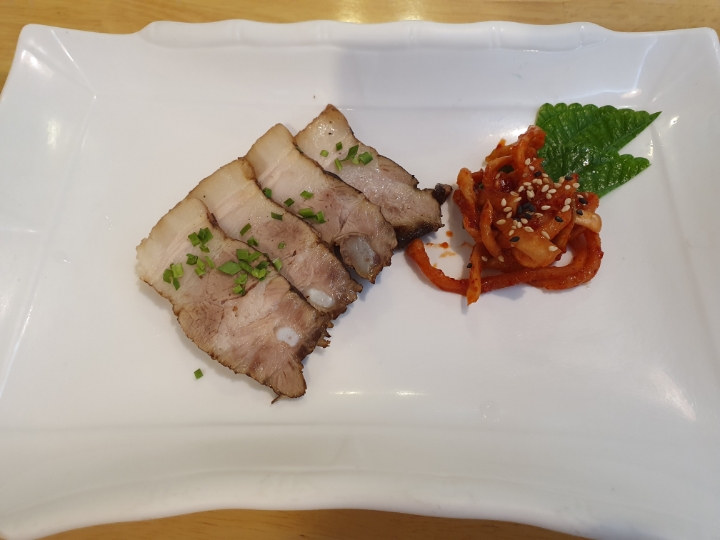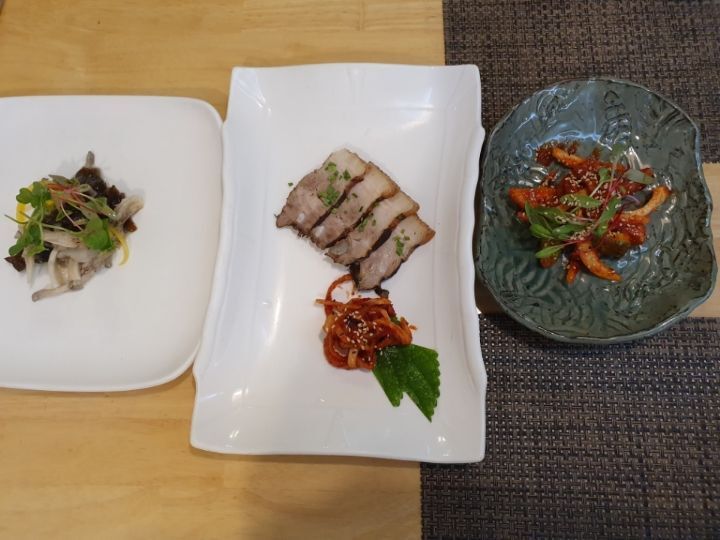 2) 본격음식이다. 돼지고기편육과 석이느타리초무침, 홍어무침이 나온다.