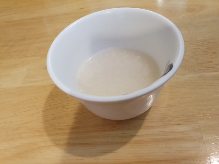 1) 부드러운 쌀죽과 잡채와 야채 카나페가 나온다.