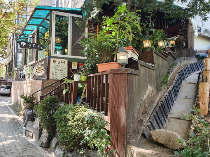 이 식당의 좋은 점은 음식가 서빙만이 아니다. 문밖을 나서면 바로 수리산 발자락, 수리산에 바로 진입할 수 있고 앞으로는 넓은 산책 코스로 이어진다는 것이다.