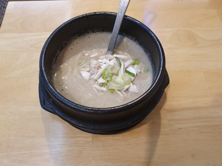 버섯들깨탕, 들깨국물이 너무 걸죽하지 않으면서도 향취는 그대로 담겨 있다. 국으로도 혹은 묽은 죽 대용으로도 절반의 식사가 되는 듯한 기분이다.
