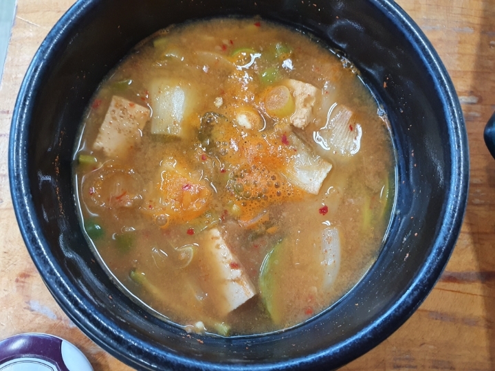 한월식 쌈이 끝나면 된장찌개와 코다리 돌솥밥이 한상 나온다. 왠지 밥을 두 번 먹는 느낌 이다. 실제로 두 상을 받는데다 차림새도 완전히 다르니, 두 가지 메뉴를 주문한 느낌도 든다.