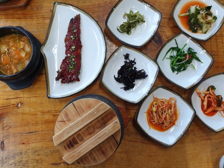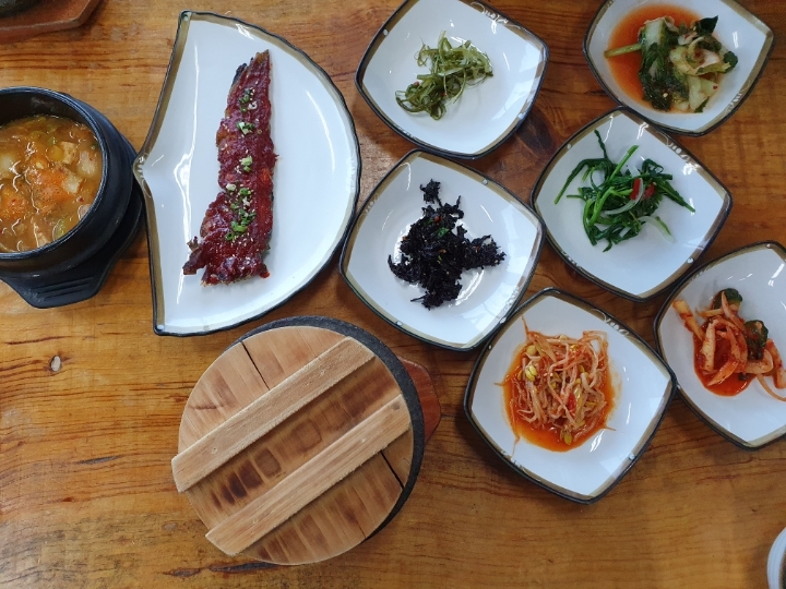 김치와 나물류 맛이 나 제법 난다. 취나물까지 맛볼 수 있다. 김무침은 최고다. 김치도 사각거리는 맛이 때를 잘 맞추고 있다.