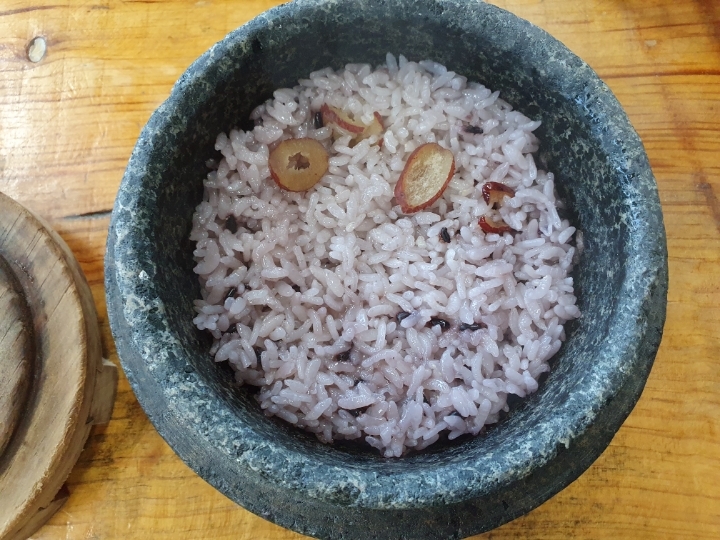 한상 이미 잘 받았는데 새손님인 양 또 한상이 이렇게 어마어마하게 나온다. 코다리찜에 돌솥밥이 자리한 부족할 거 없는 큰 상이다. 코다리도 맛있고, 밥은 적당한 만큼의 잡곡이 들어간 고슬고슬한 뜨거운 밥이다. 마무솥뚜껑을 열고 김이 폴폴 나는 밥을 퍼 놓고, 찬 물을 부어놔도 숭늉에 깐밥 맛이 고스란히 우러난다.