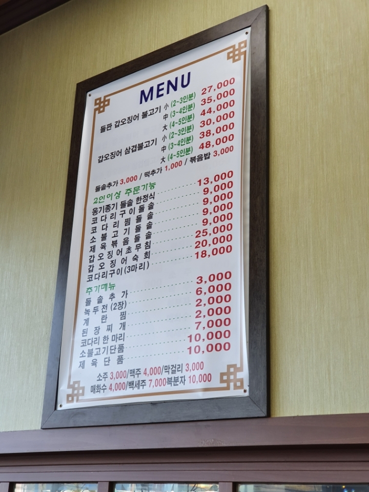 주요음식 : 갑오징어 불고기, 돌솥한정식, 코다리구이돌솥 등