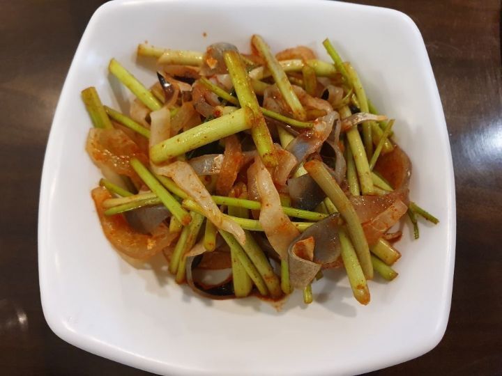 그래서 주변 찬에 더 신경을 쓴다. 복어껍질무침은 먹을만하다. 쫀득거리는 맛이 그대로 살아 있고 싱싱한 미나리에 적당히 식초를 넣어 양념에 파묻히지 않는 재료 맛이 싱그럽다.