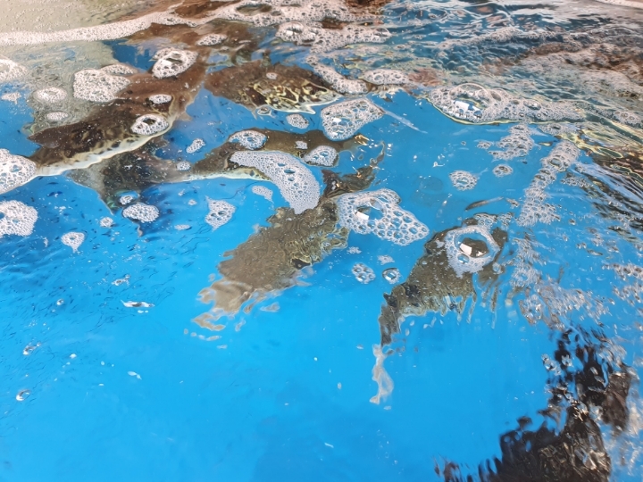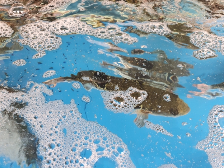 *복어가 어항에서 헤엄친다. 복어를 어항에서 보는 것은 흔한 일이 아니다. 맹독성의 살아있는 복어가 신기하면서도 아찔하다.