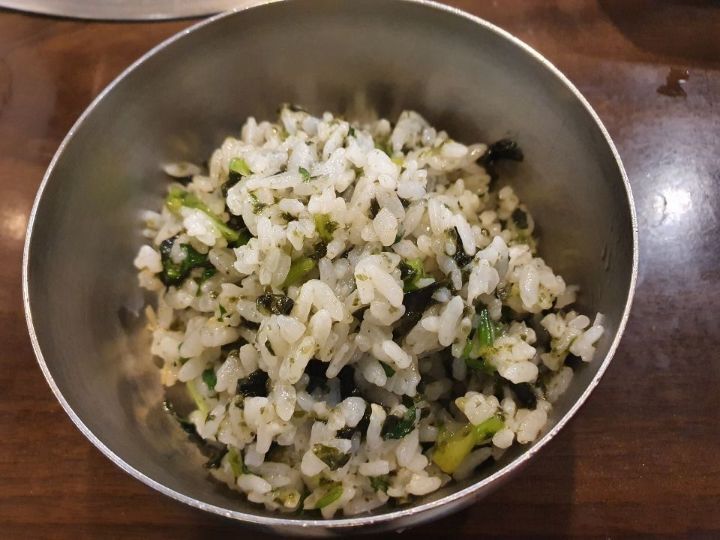 밥은 쌀을 조금 더 좋은 걸 쓰면 어떨까. 그러나 볶아온 밥은 아주 맛있다. 볶으니 퍼실한 느낌도 어느 정도 해결이 된다. 미나리 향도 좋다.
