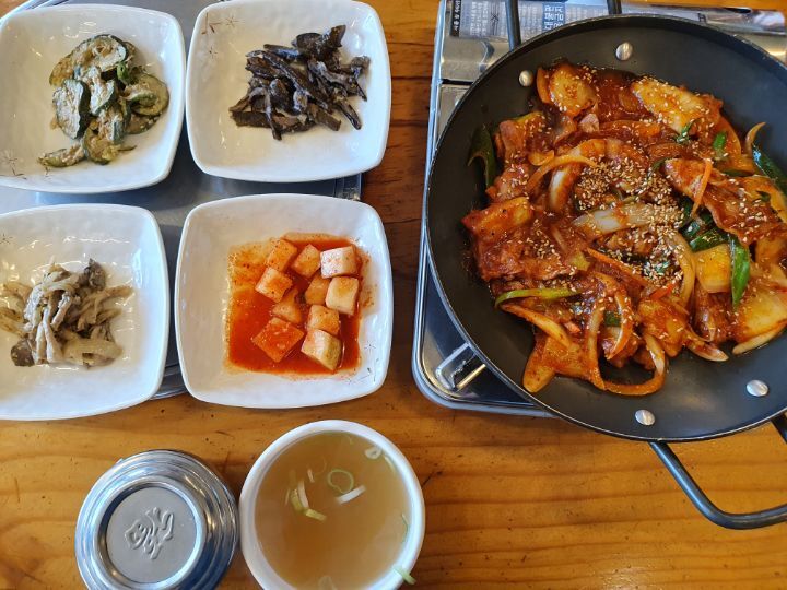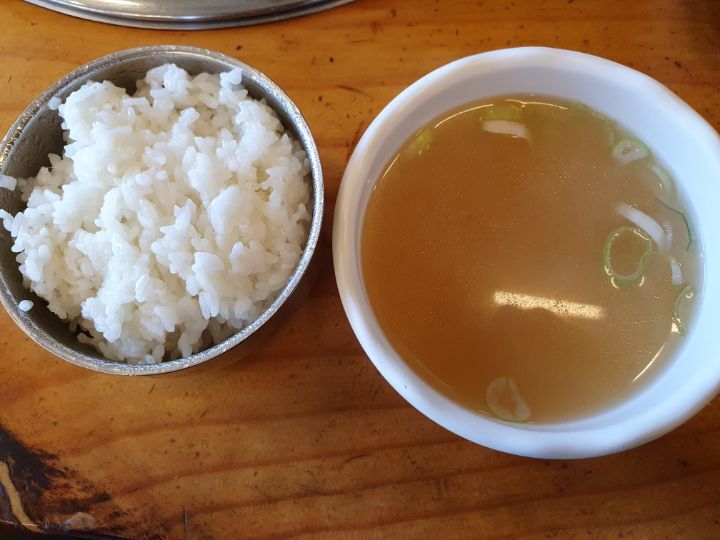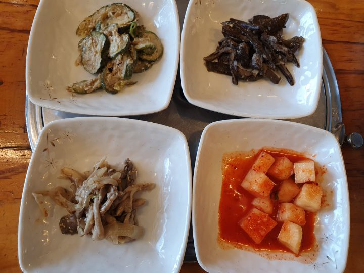 국이 밍밍하고, 밥알이 윤기가 없이 질척이지만, 다른 반찬 덕에 소소한 불만이 덮힌다.