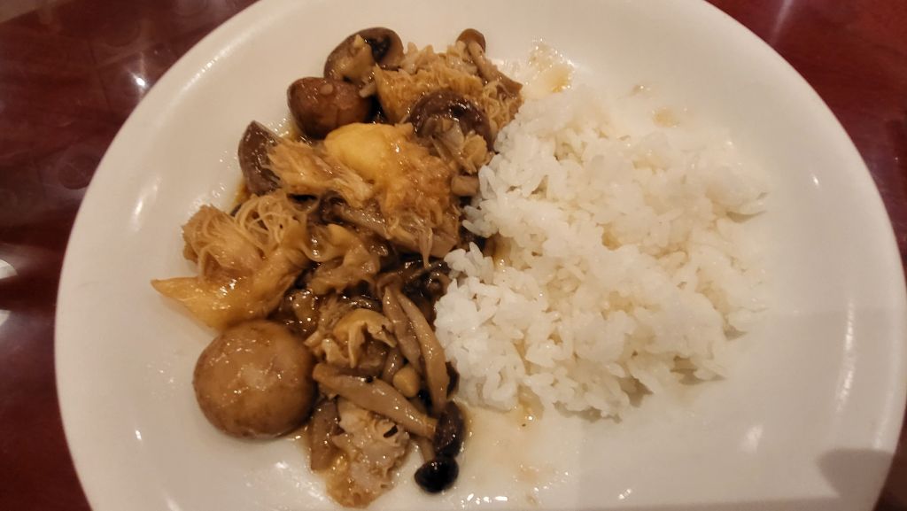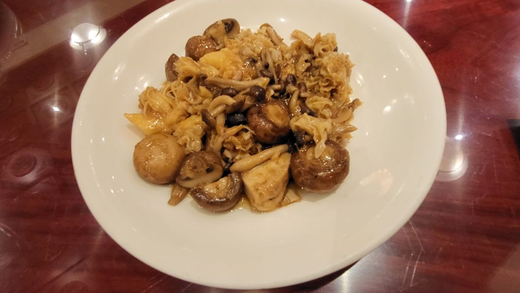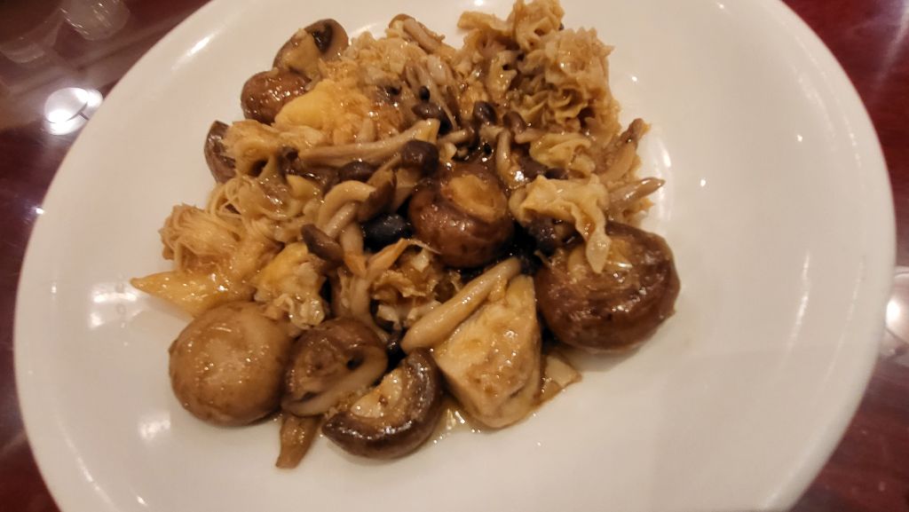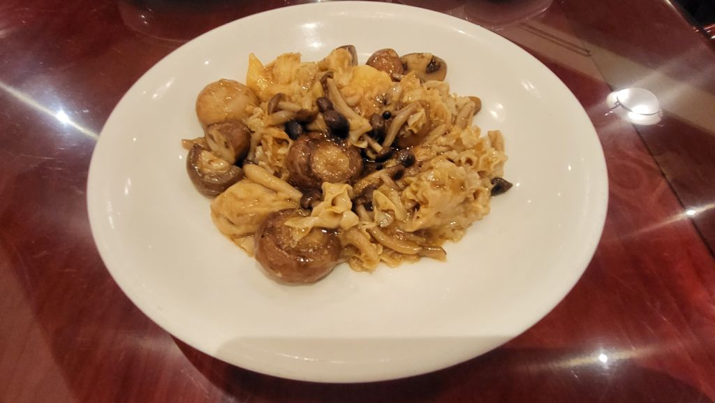 새우만두. 딤섬 중에서 가장 일반적인 만두. 그러나 버섯 요리에 밀려 딤섬은 한 층 처진다. 만두피도 식감이 좀 떨어진다. 새우만두는 죽순과 함께라는데 죽순 맛은 잘 못 찾겠다.
