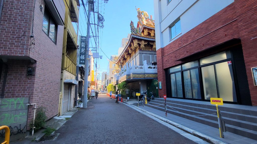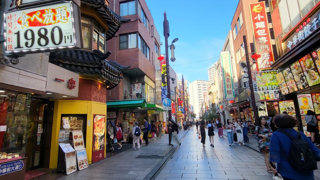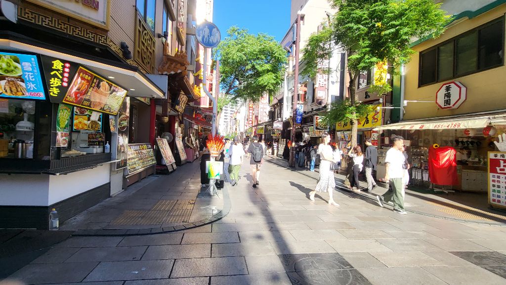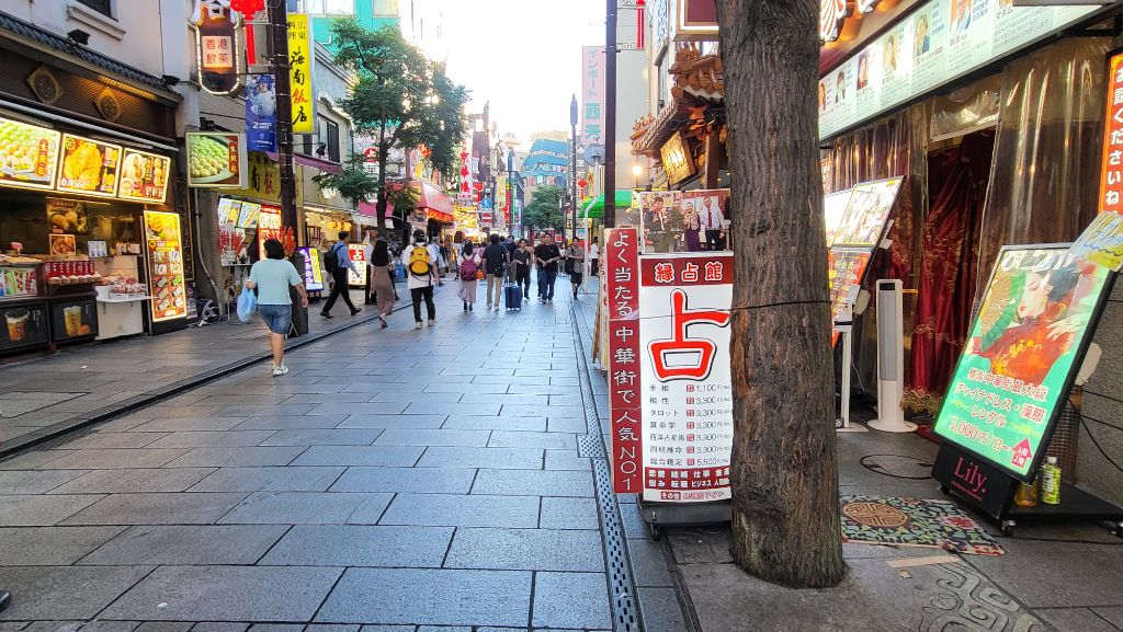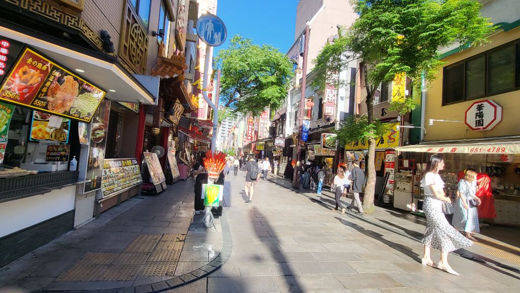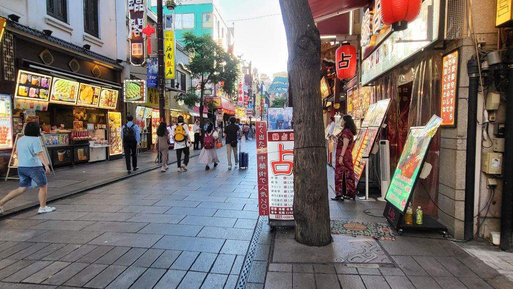 이곳은 일본의 유명한 고베와 나가사키의 차이나타운과 함께 3대 차이나타운인데 이곳이 가장 유명한 곳이다. 일본의 화교는 대개 대만을 원적으로 한다. 대만은 식민통치 당했으나 원래 나라를 세우지 못한 곳이어선지 일본에 반감이 덜하다. 대만에서는 총독부도 기념으로 남겨두었다. 물론 궁을 헐고 지은 우리 총독부 건물과는 함의가 다르지만.