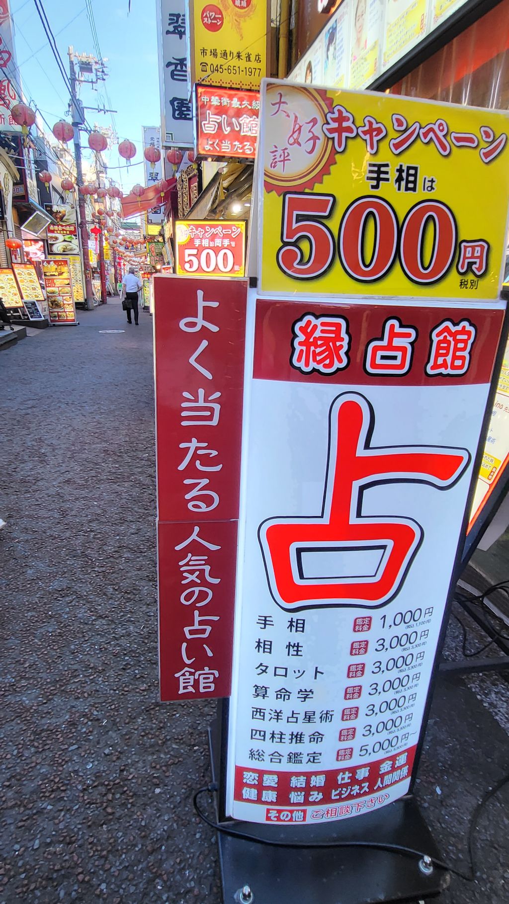 그런 사람들이 요코하마에는 없었다. 거의 중국집으로 도배를 한 길거리, 1/5쯤은 점집이었다. 어떻게 점집이 저리 성행할 수 있는지, 세계 어디서도 찾아보기 어려운 풍경이다. 수상 관상 등등을 저렴한 값으로 본다고. 사람이 직접 호객행위도 한다. 저렇게 그악스러워서 일본에서마저 살아남은 것인가.