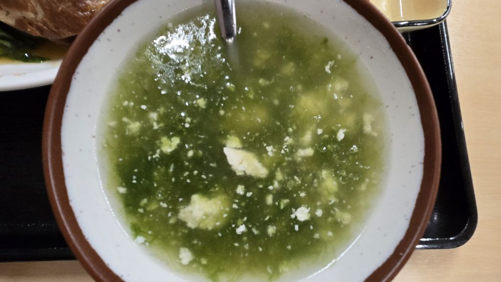 탕이 우무처럼 엉켜 있다. 이것도 일본에는 없다. 맑은 미소시루를 주로 먹는 일본. 수저도 안 쓰고 후루룩 마셔가면 먹는 된장국. 이것은 건더기가 있어 마실 수 없다. 그것도 콜로이드처럼 엉켜 있어 마시기에는 여러모로 부적절. 일본 미소시루는 칼을 차고 않아 먹던 무사가 유사시에 총알처럼 튀어나갈 수 있게 하기 위해서는 건더기 잔뜩 든 국을 수저로 떠먹게 할 수는 없어서 맑은 장국으로 끓인다는 말이 있다.