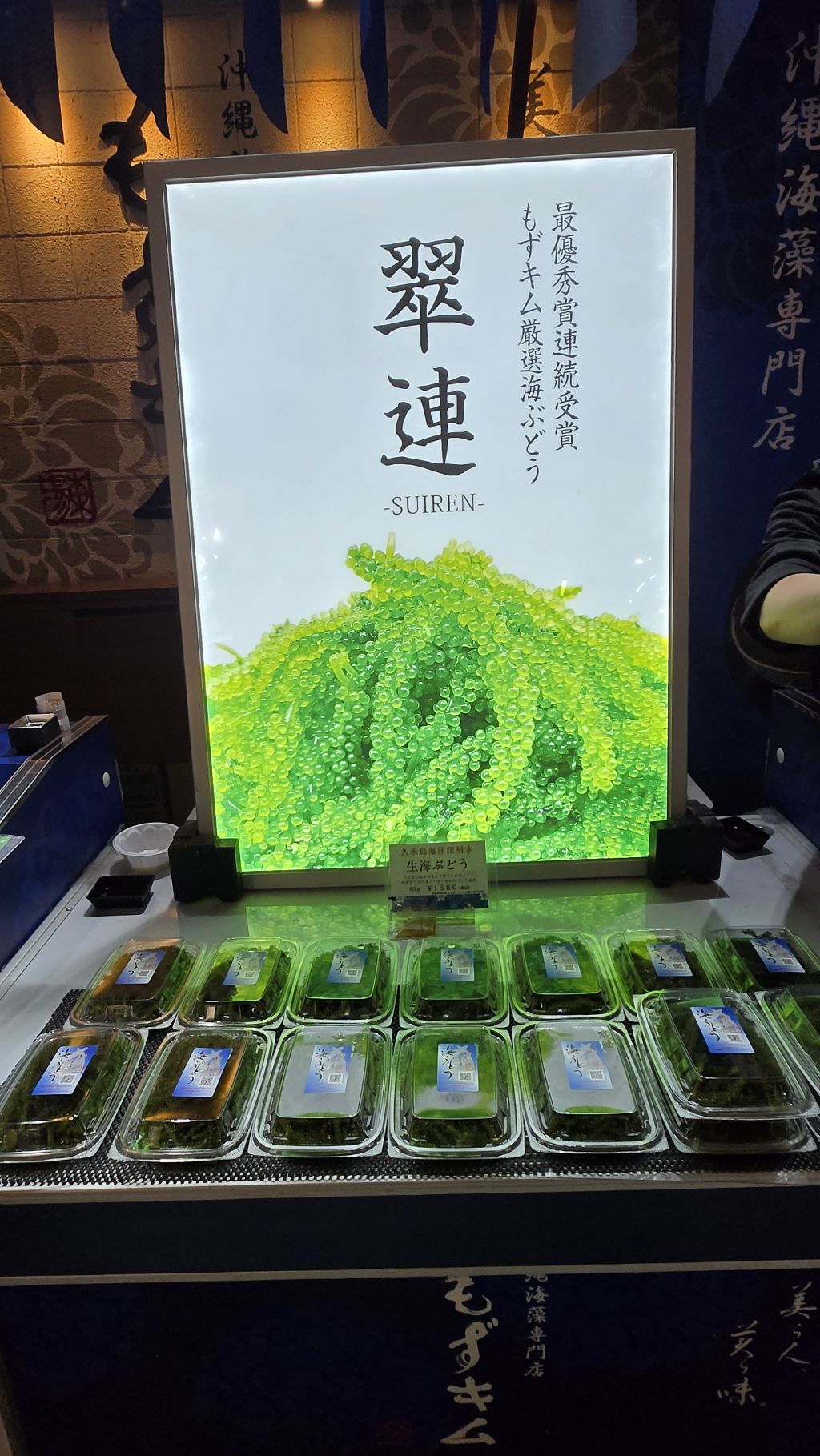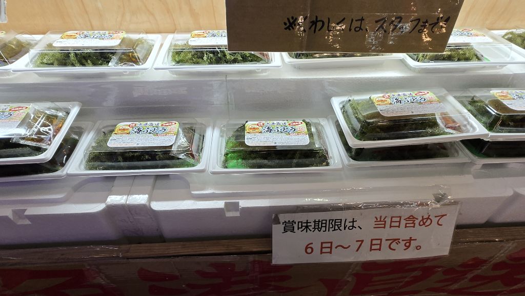 우미부도, 바다포도. 바다에서 나는 ‘포도’처럼 톡톡 터지는 식감의 해산물, 간단한 안주나 반찬으로 자주 먹는다. 맛볼 수 잇는 기간은 당일 포함 6,7일이라는 신선도가 생명인 해조류다.