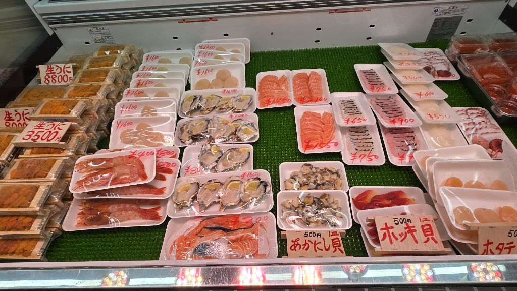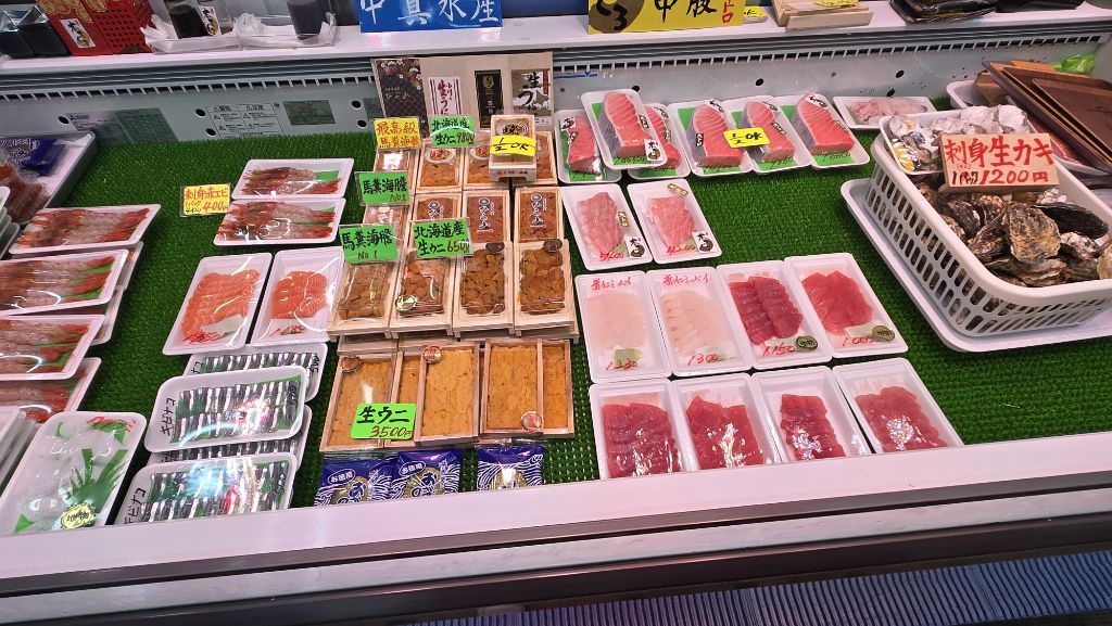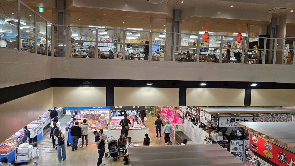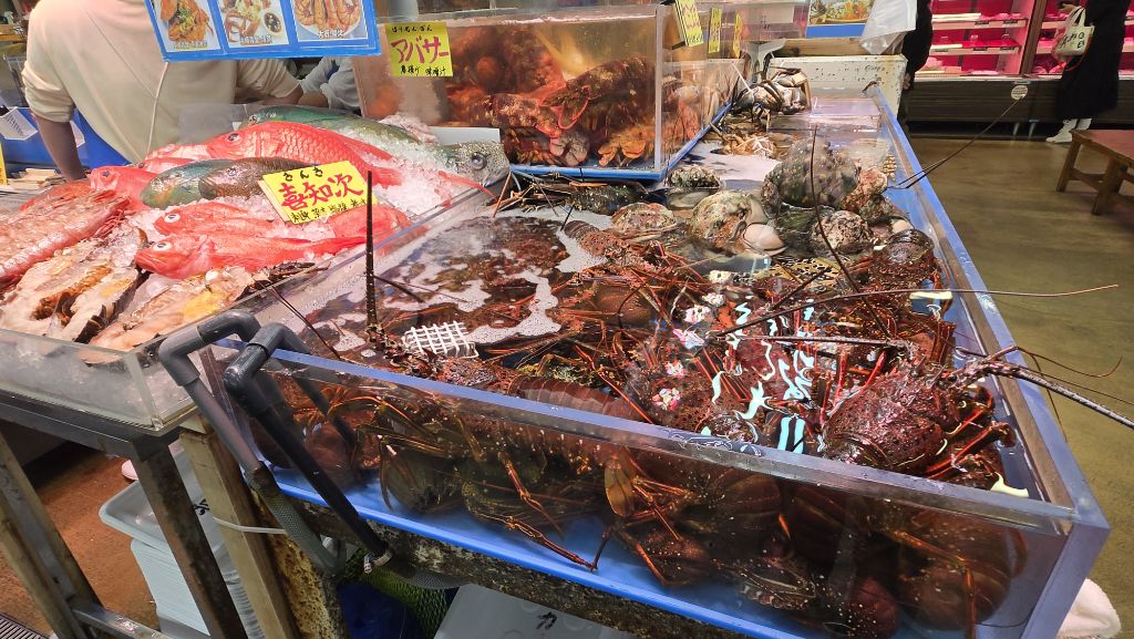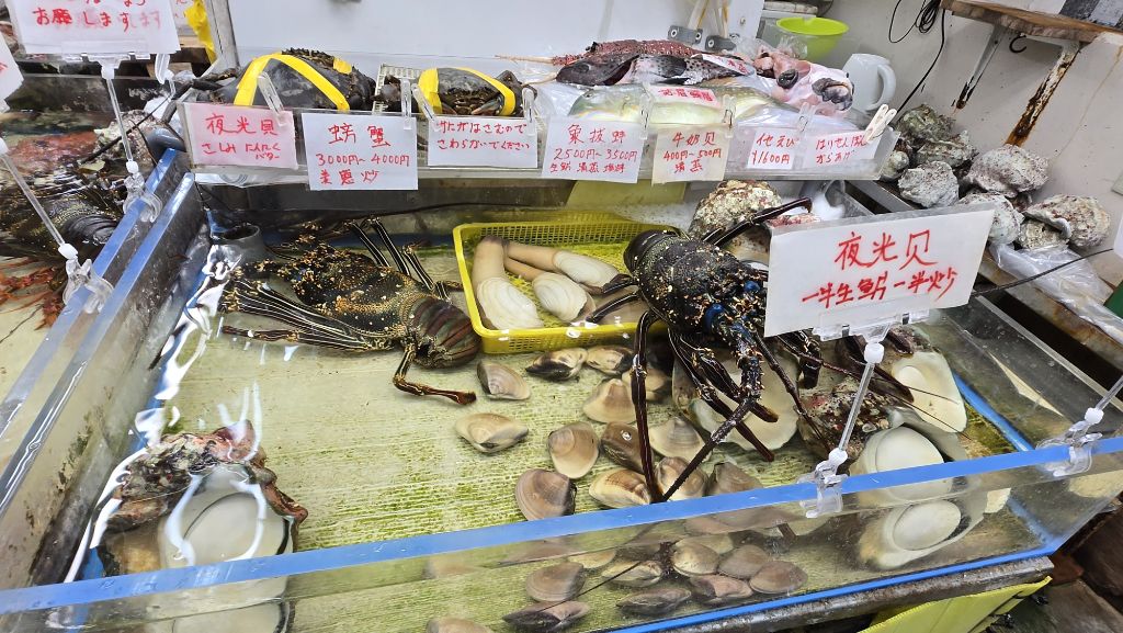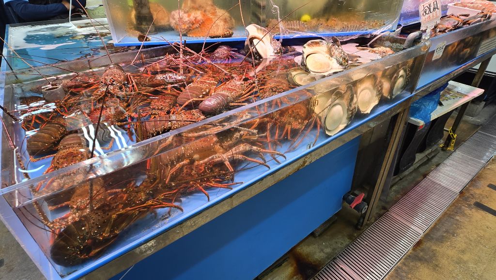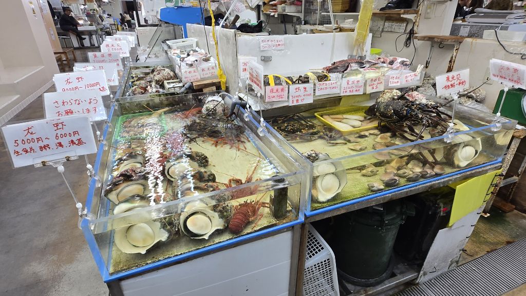 아래층은 수산시장. 그 자리서 회를 떠서 판다.