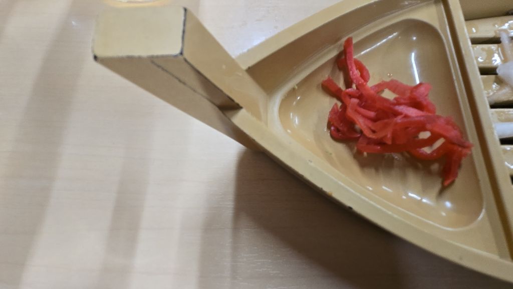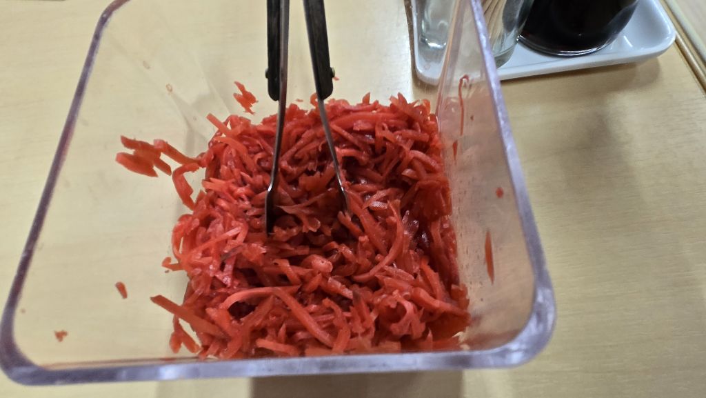 무는 아닌 거 같고, 당근 비슷도 하지만 당근도 아니다. 짠 쯔께모노인데, 이렇게 김치처럼 상 위에 올려두고 상식하도록 하였다. 일본에는 이런 상차림, 이런 음식이 거의 없다.