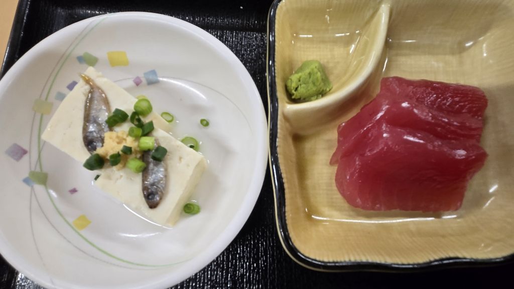 두부에 얹힌 작은 조기같은 생선. 우리는 이게 없는 거 같다. 아니면 황새기새끼일 수도. 짠맛이 들어 있어 생두부에 간을 넣고 풍미를 올린다. 두부의 다양화, 생선양념의 다양화가 일본과 많이 다르다.