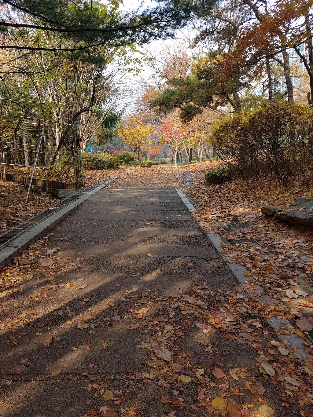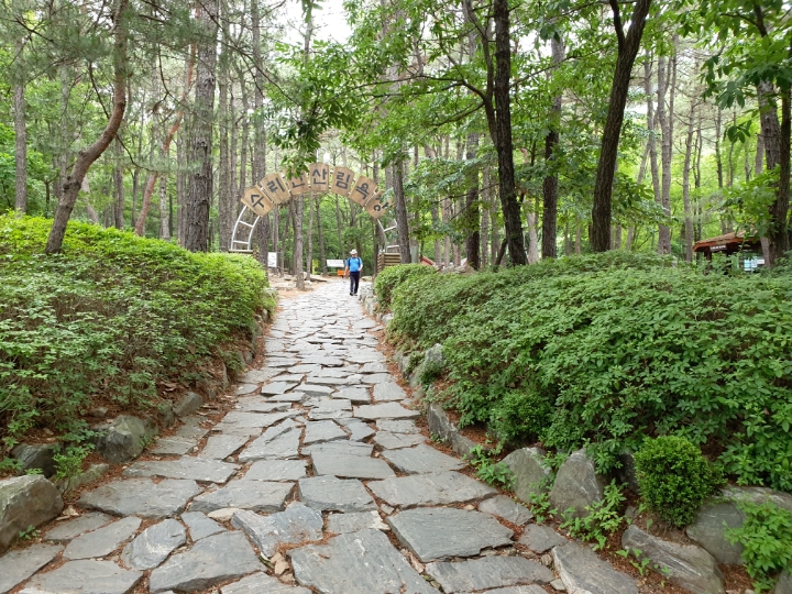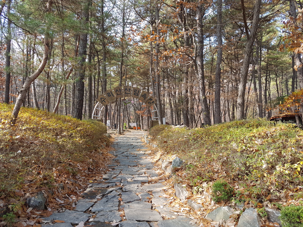 산림욕장 입구다. 사실 수리산은 산 전체가 산림욕이 가능한 곳이다. 마을 바로 뒷편의 산이 높지 않으면서도 높은 나무들로 꽉 채워져 있어 마치 유럽의 산에 온 듯한 기분도 든다. 우리 산에 이렇게 높은 나무들 숲이 있던가, 나무들의 높이가 대단하다. 하지만 그리 굵지는 않아 위압적인 느낌은 없이 포근한 그늘과 부드러운 바람을 안고 있다.