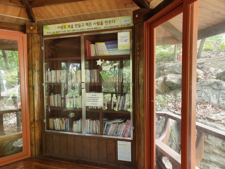 상연사 앞 마당에 북카페가 있다. 북카페로 쓰이는 팔각정이 안까지 말끔하게 청소되어 있고, 책이 몇 권 꽂혀 있다. 여기까지 와서 누가 얼마나 책을 읽겠냐마는 마음의 휴식공간으로도 삼을 수 있을 거 같아 위로가 된다.