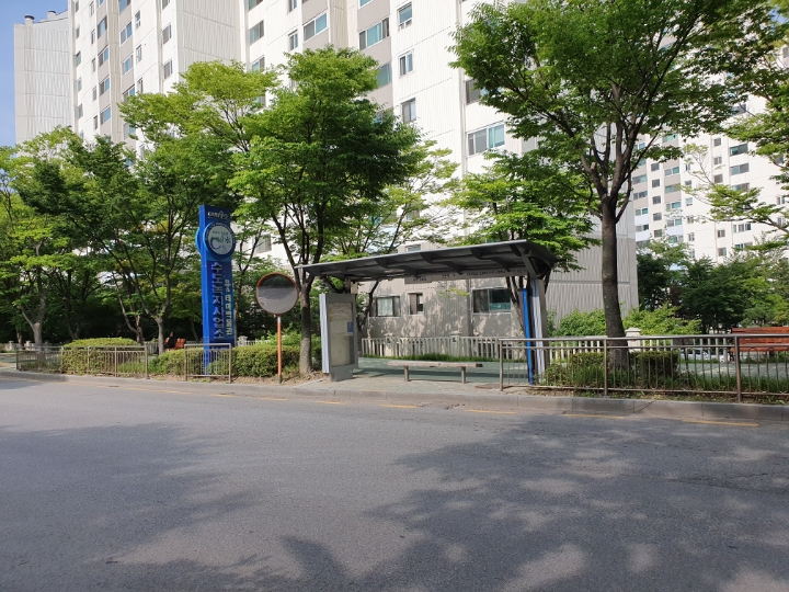 수도녹지사업소, 버스정류장이다. 이곳에서 둘레길 산책을 끝낼 수도 시작할 수도 있다.