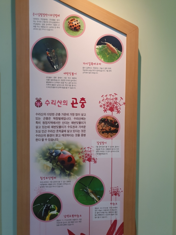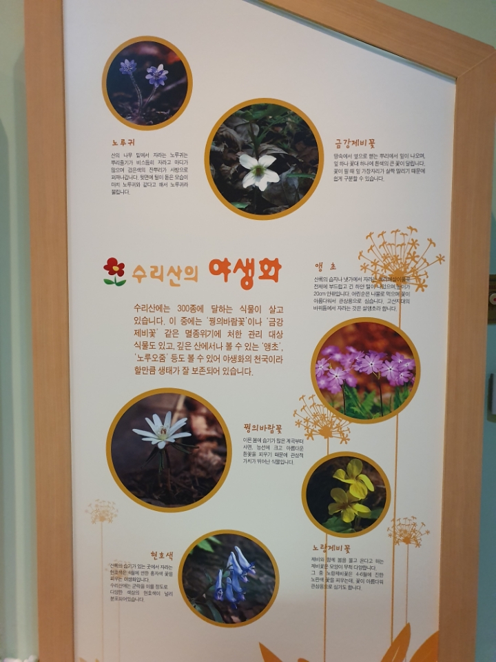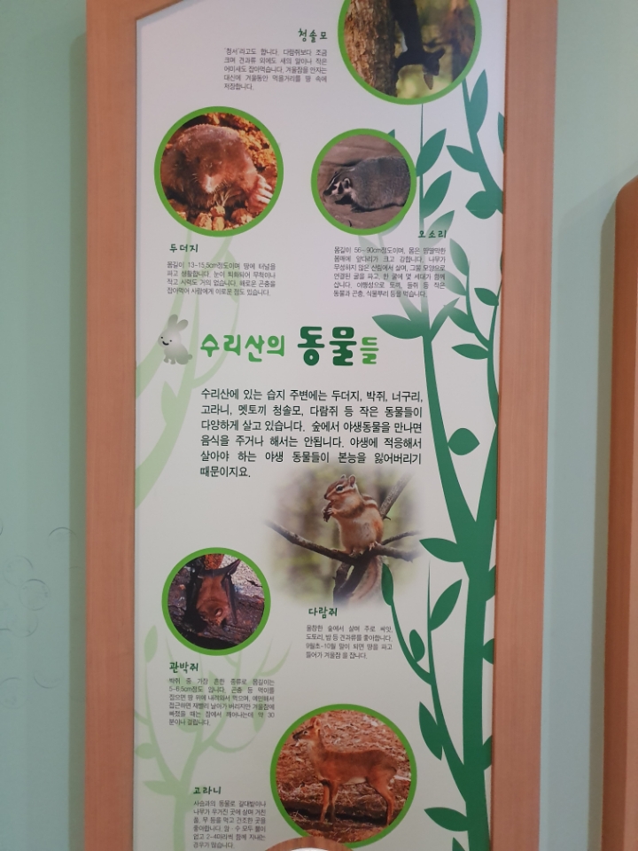 *반월호수 옆 <군포대야물말끔터>에 가면 수리산에 동식물 소개가 있다.