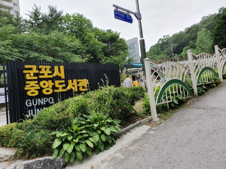 2019.6. 이번에는 중앙도서관에서 오르는 둘레길로 올라본다. 시내 버스가 여기에 선다. 산본역에서 올 수 있다.